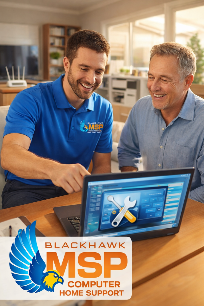 Blackhawk Computers provides professional home computer support. Many problems can be fixed the same day with remote support, so you don’t have to leave your house.